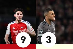 体育资讯04月09日讯 队报对阿森纳3-0皇马的比赛进行了打分,打入两粒任意球的赖斯得到9分的高分,萨卡8分第二,维尼修斯和罗德里戈被打2分,并列全场最低,姆巴佩3分,和吕迪格、阿拉巴、安切洛蒂的得分一致。